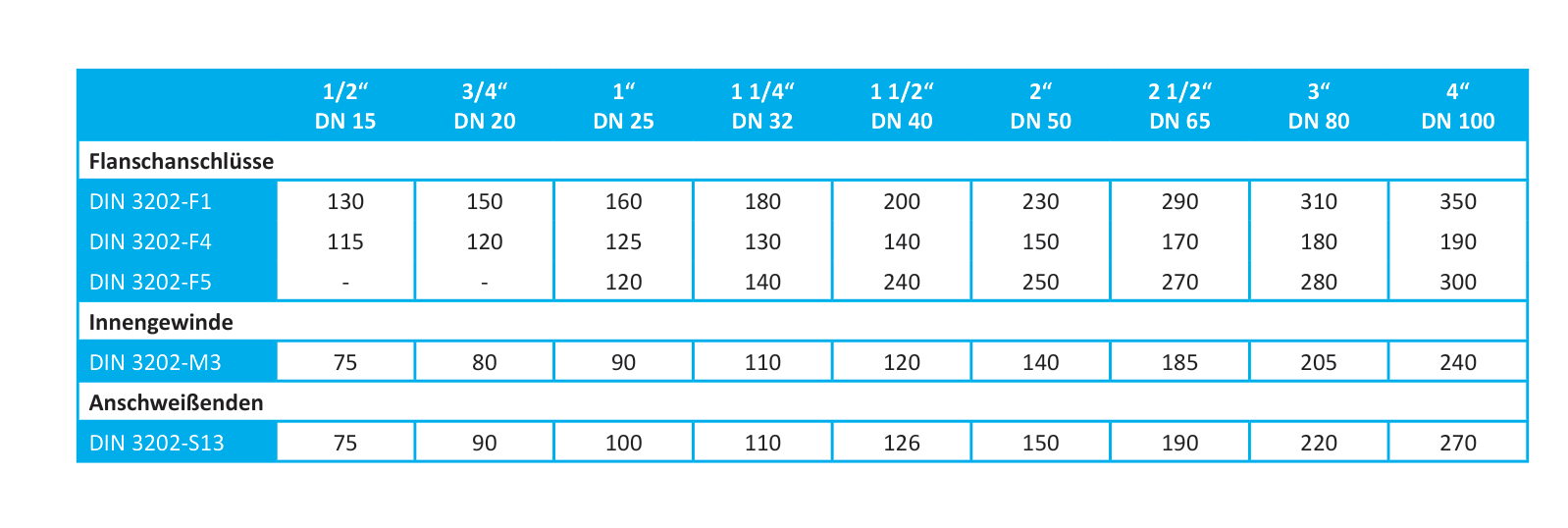 Genormte Einbaulängen von Armaturen nach DIN 3202