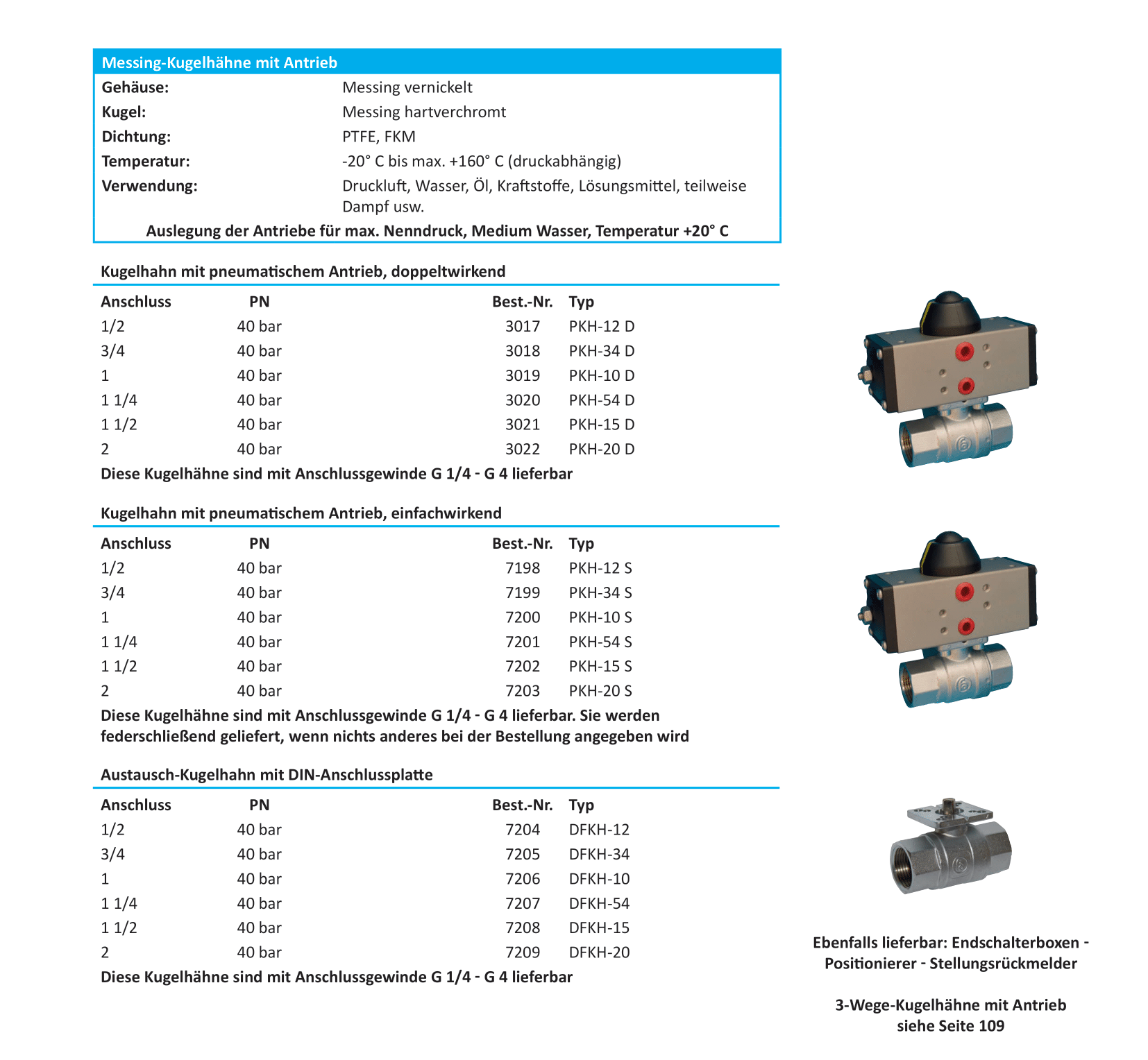 Messing-Kugelhähne mit pneumatischem Antrieb