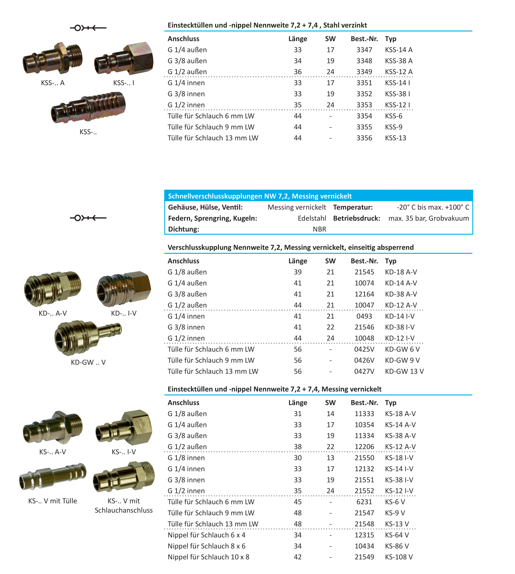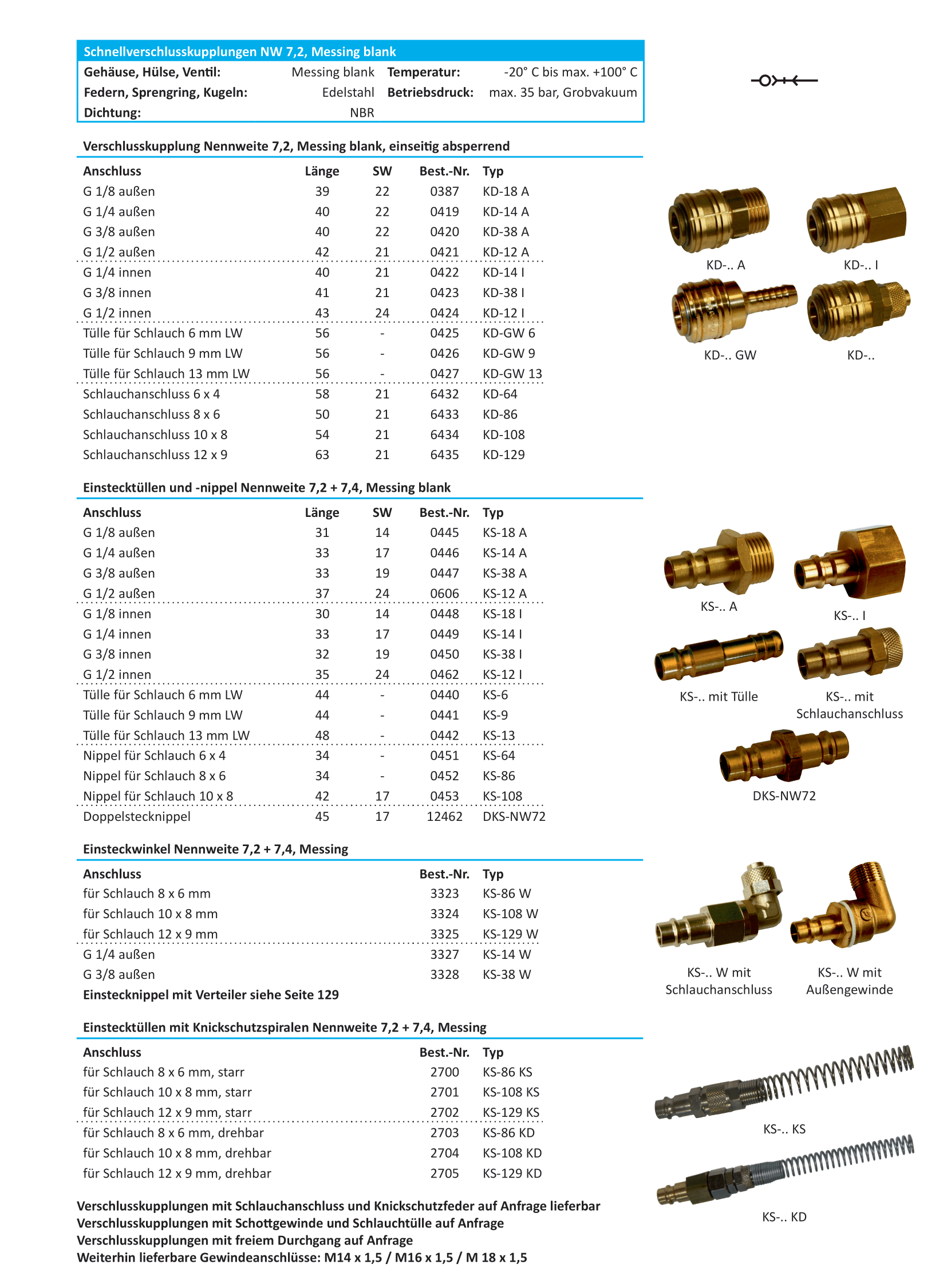 Schnellverschlusskupplungen Messing NW 7,2 - einseitig absperrend