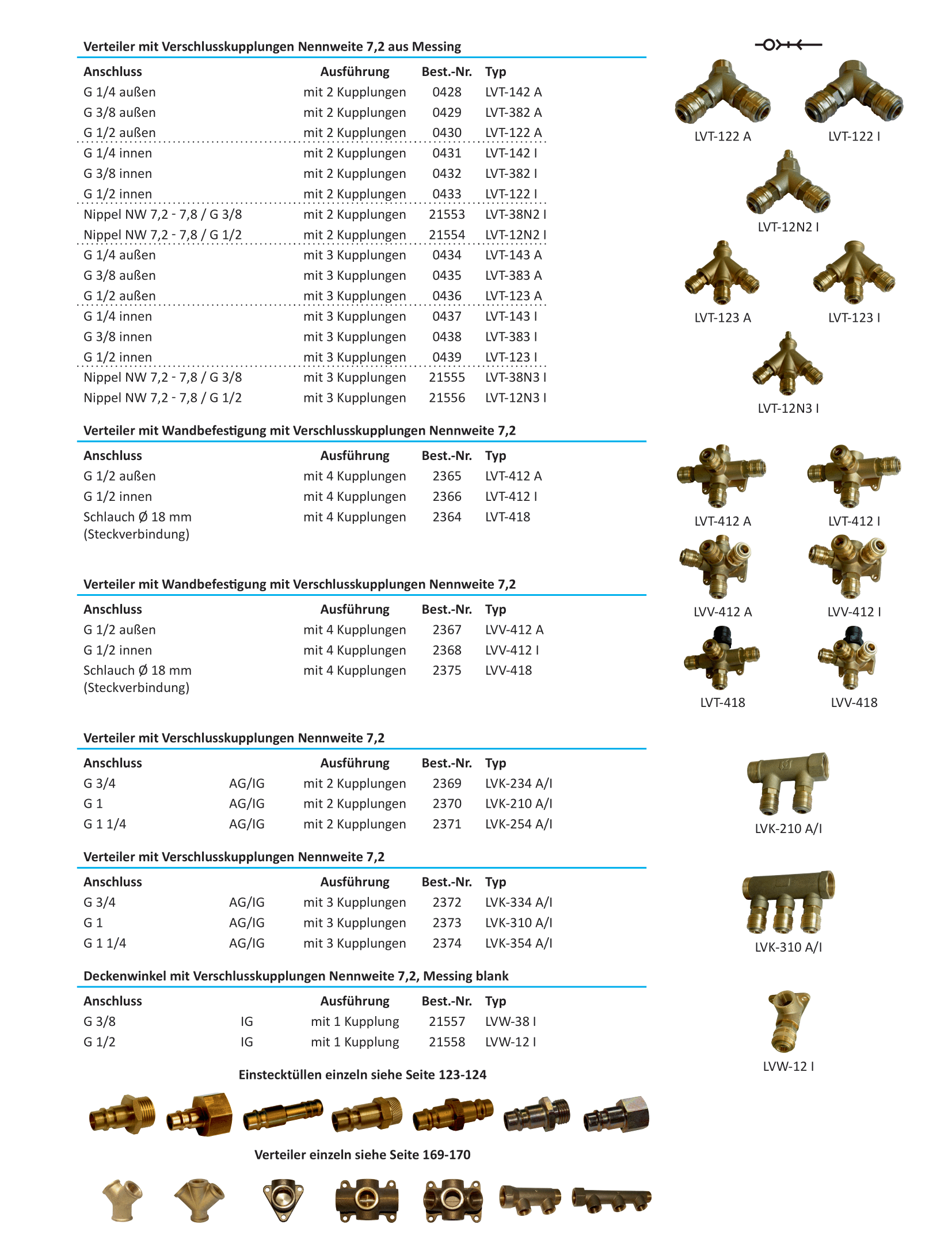 Verteiler mit Kupplungen aus Messing NW 7,2