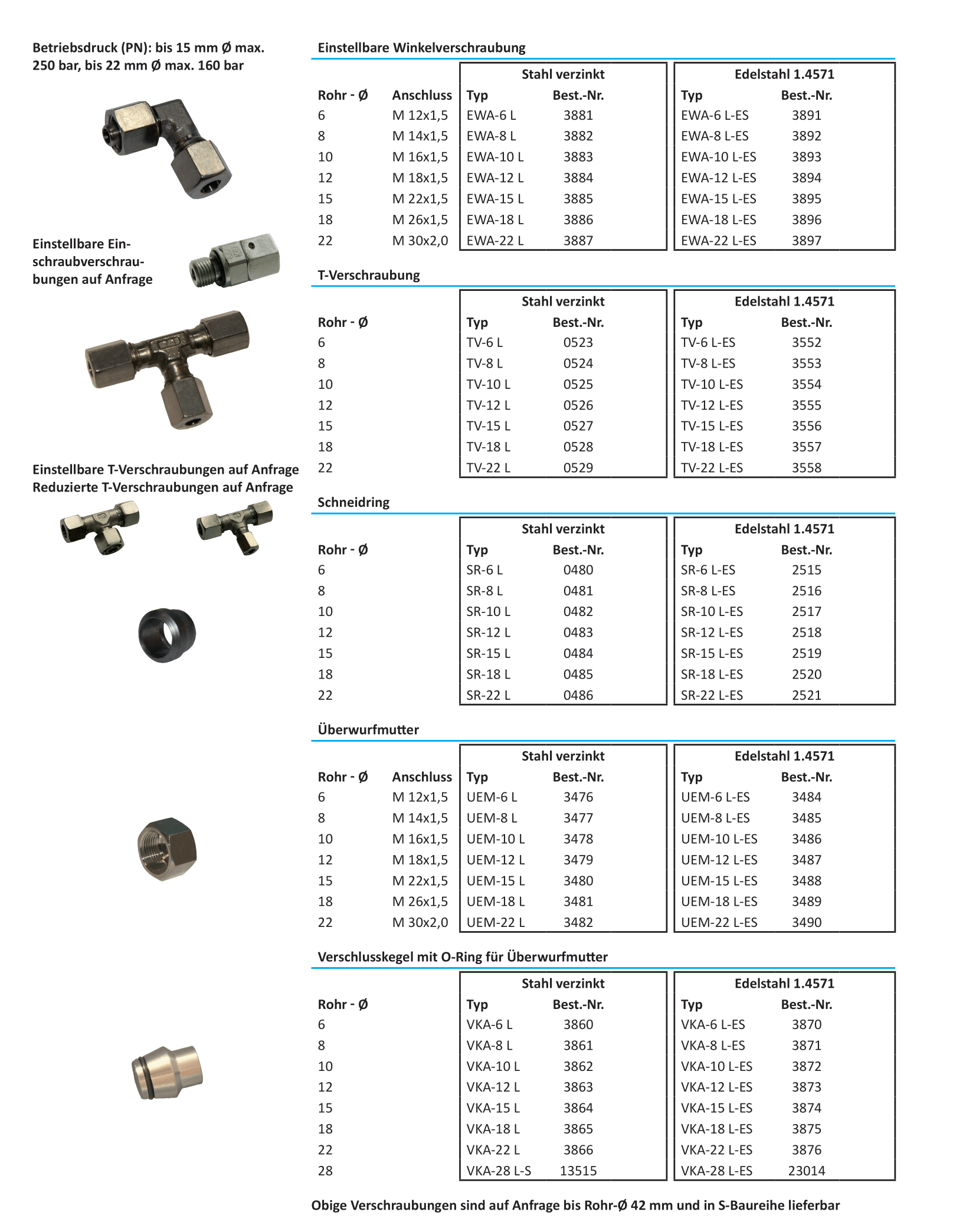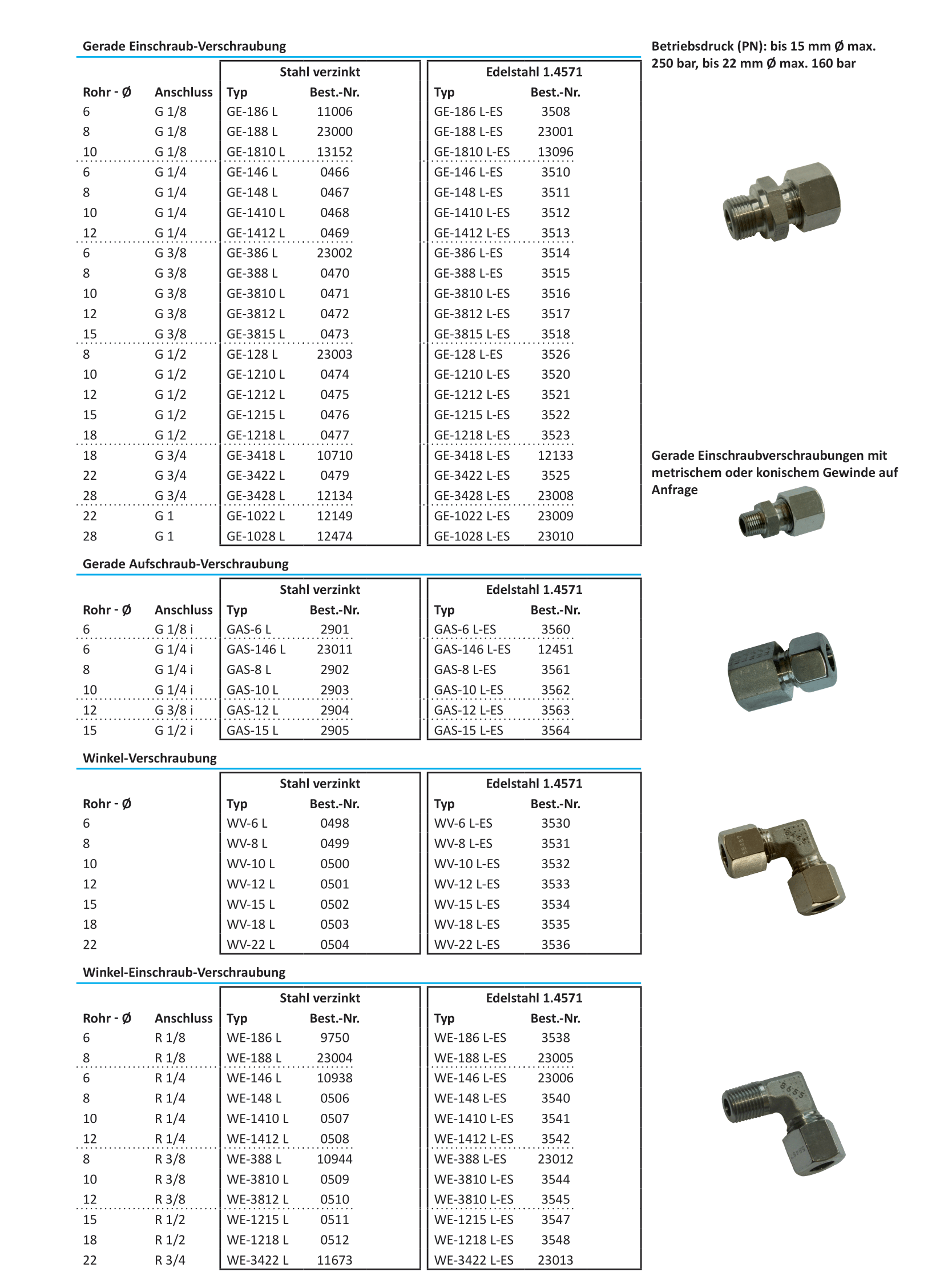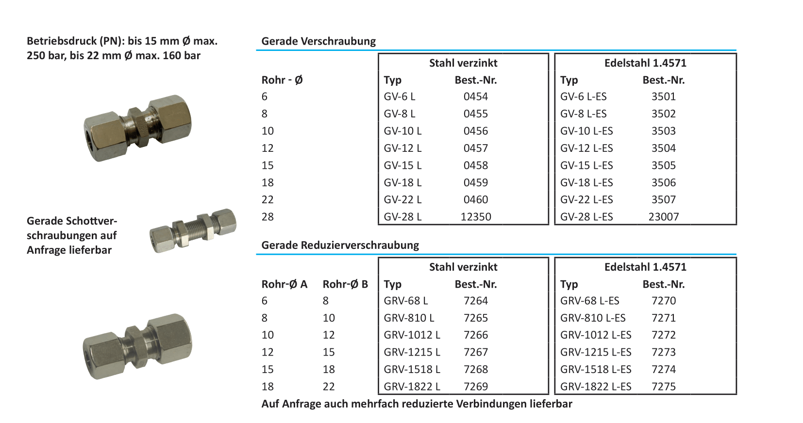 Schneidring-Verschraubungen Baureihe L - Stahl und Edelstahl