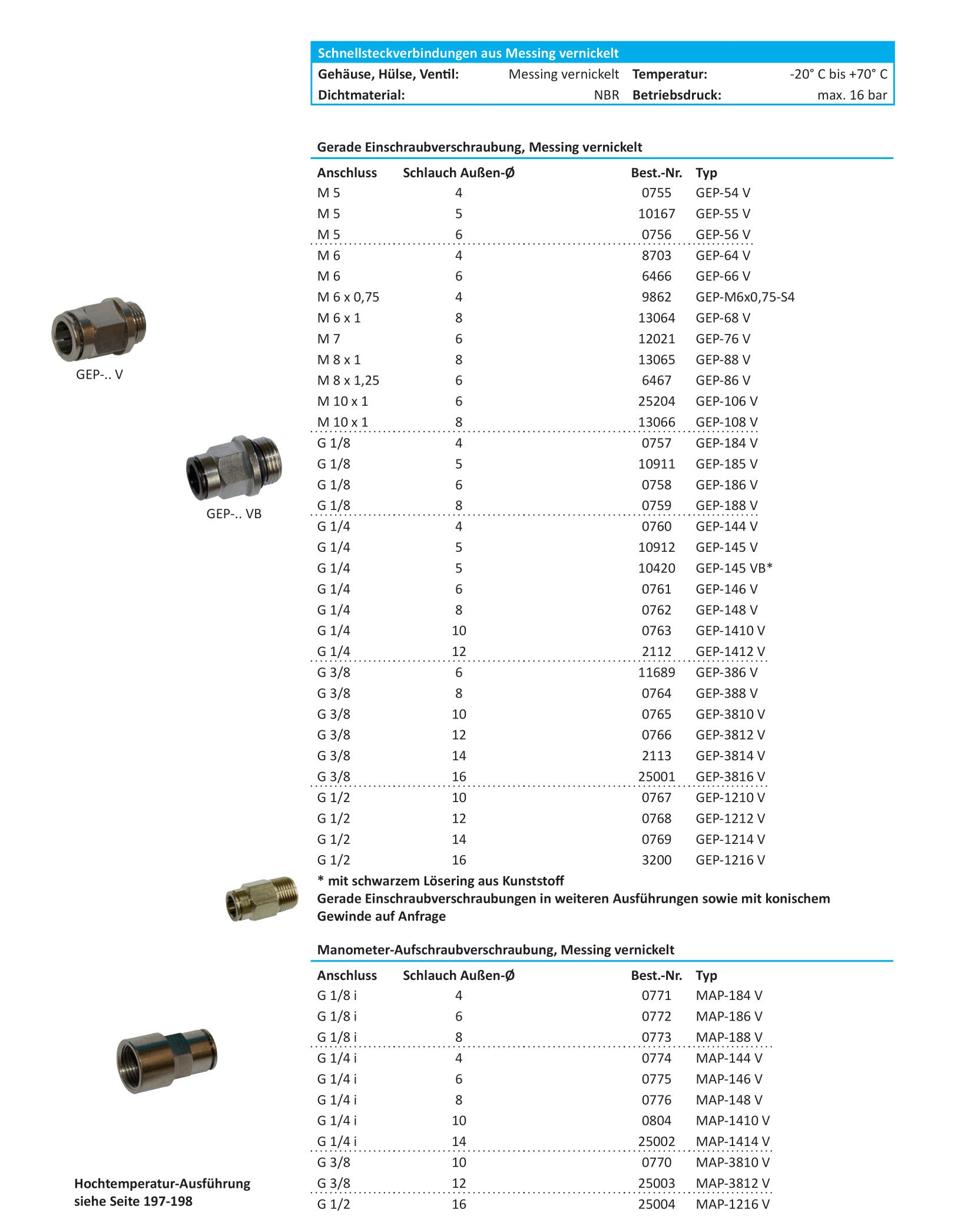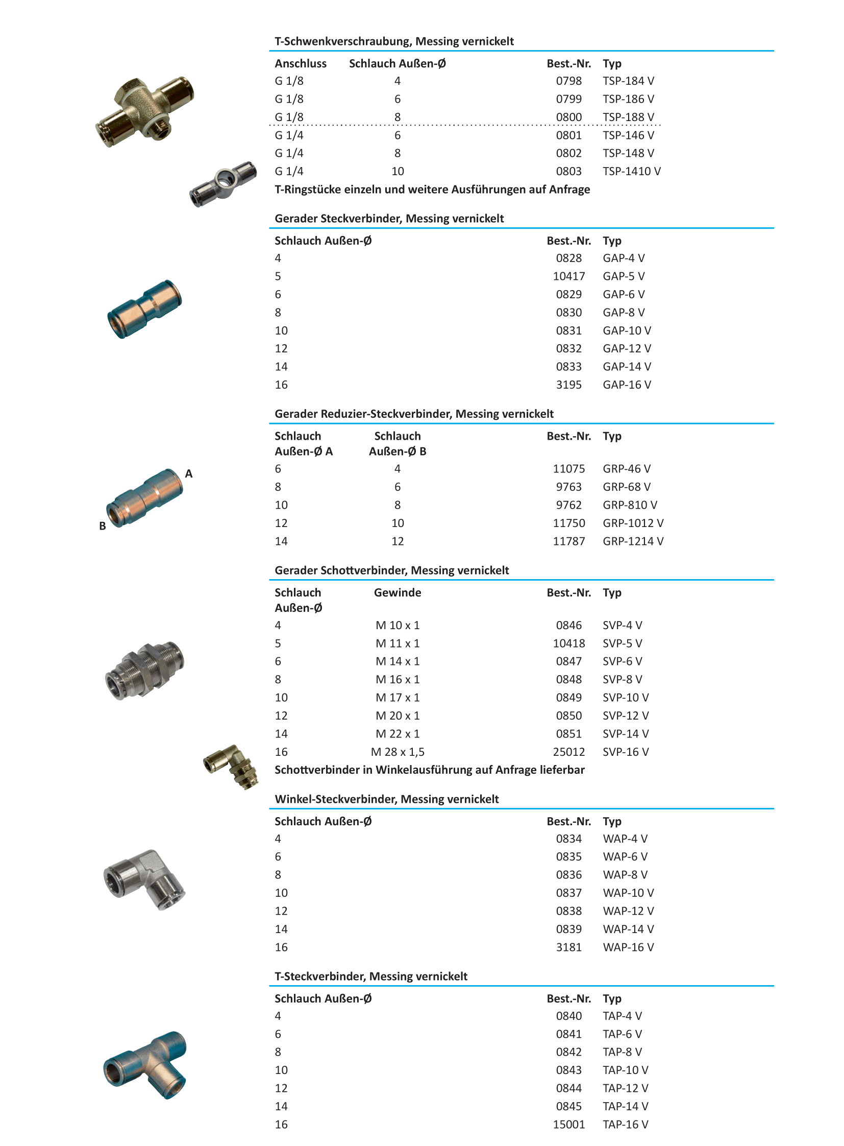 Schnellsteckverbindungen - Messing vernickelt