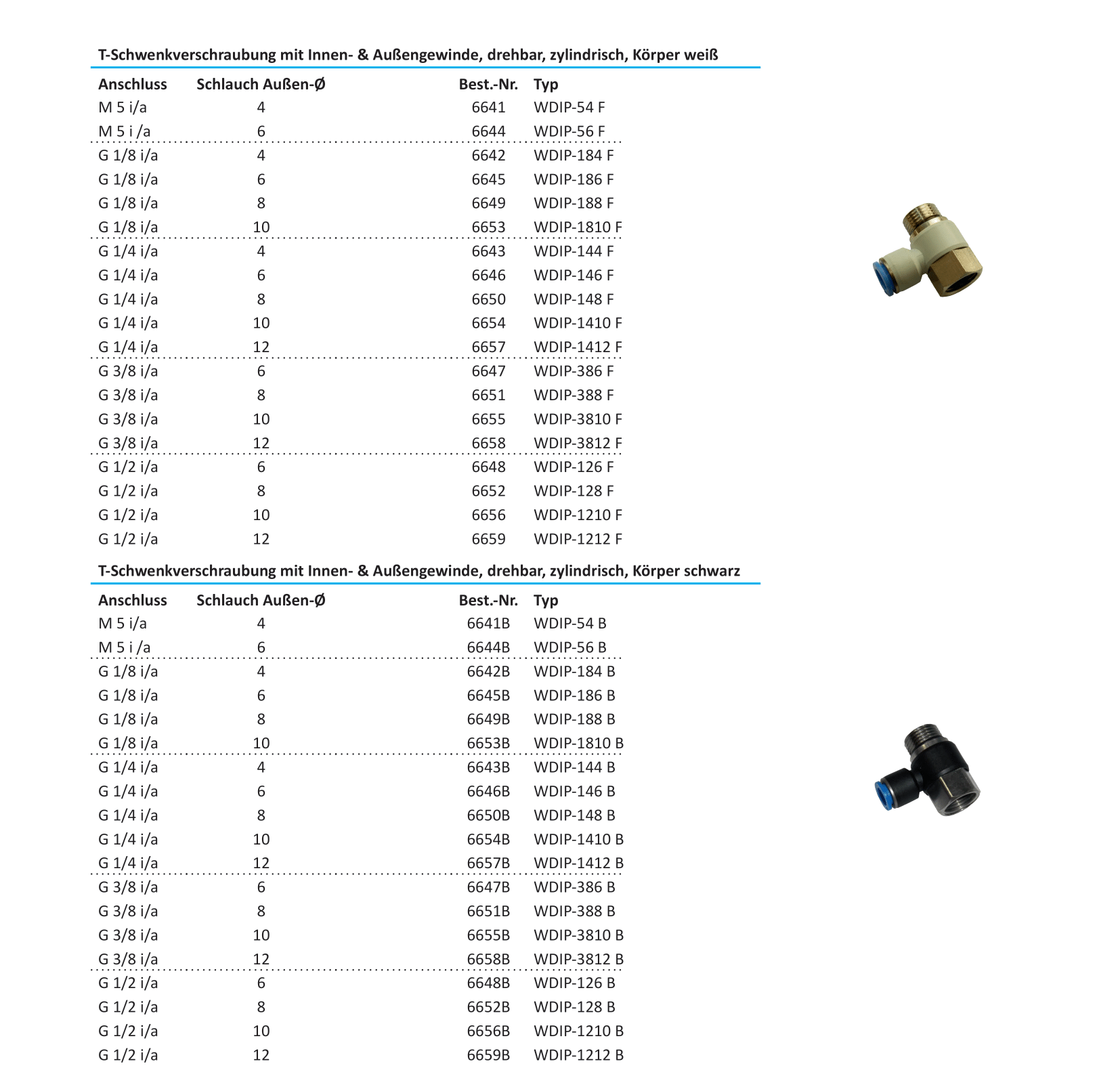 T-Schwenkverschraubungen mit Innen- und Außengewinde