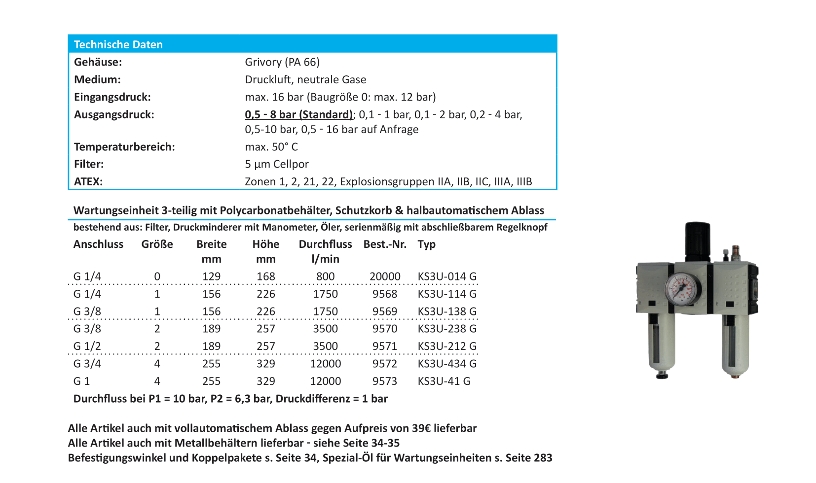 Baureihe FUTURA: 3-teilige Wartungseinheiten