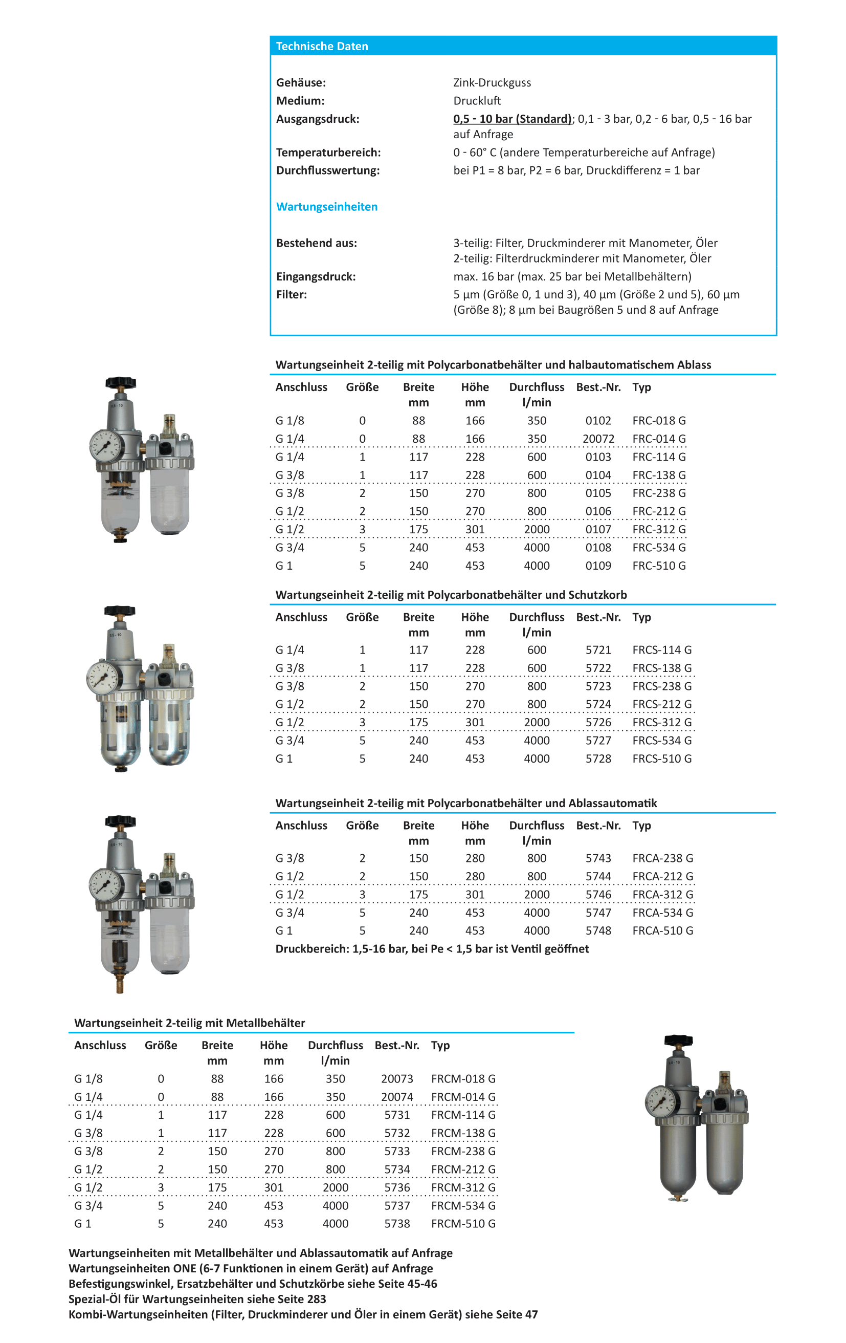 Baureihe STANDARD: 2-teilige Wartungseinheiten