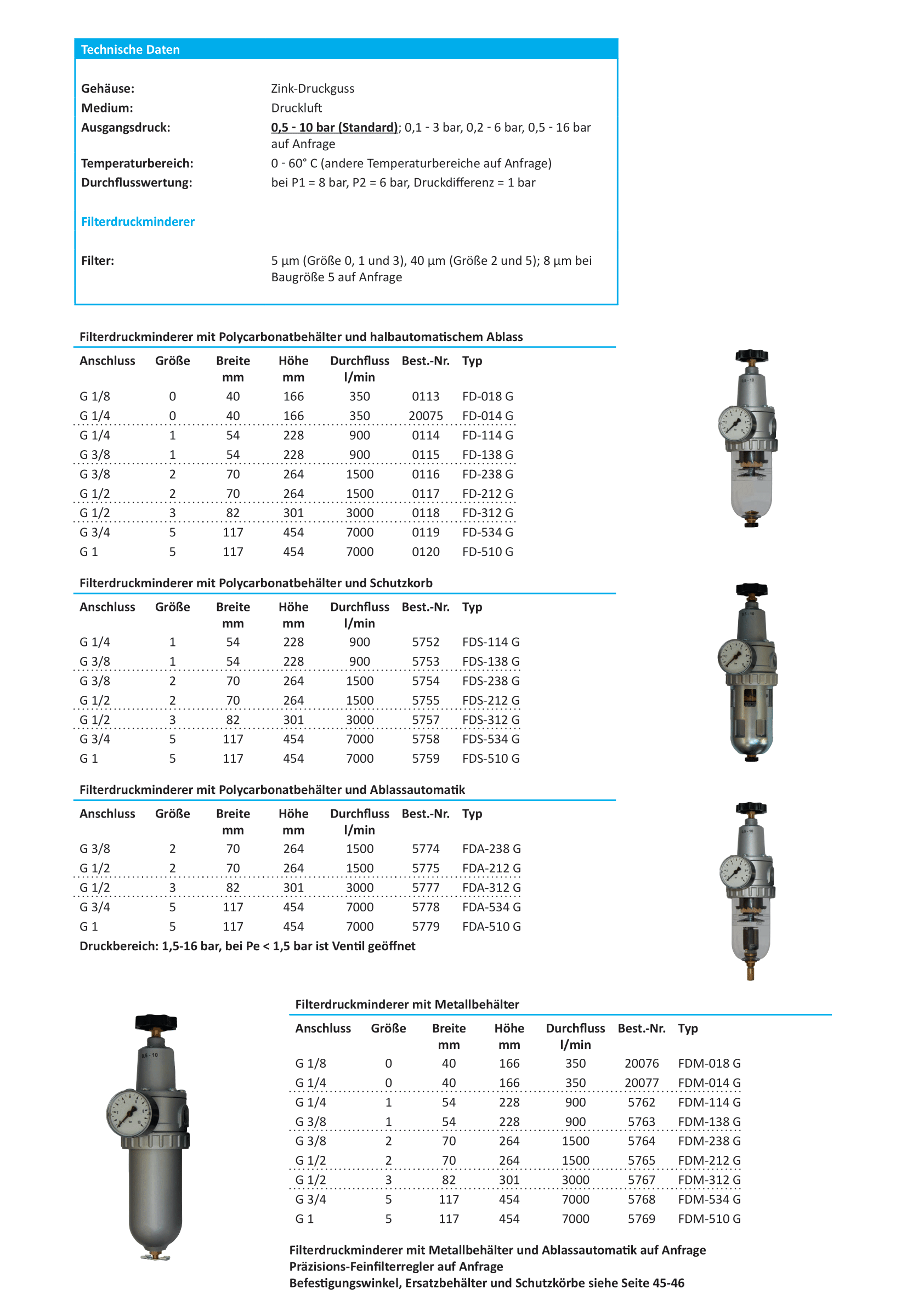 Baureihe STANDARD: Filterdruckminderer