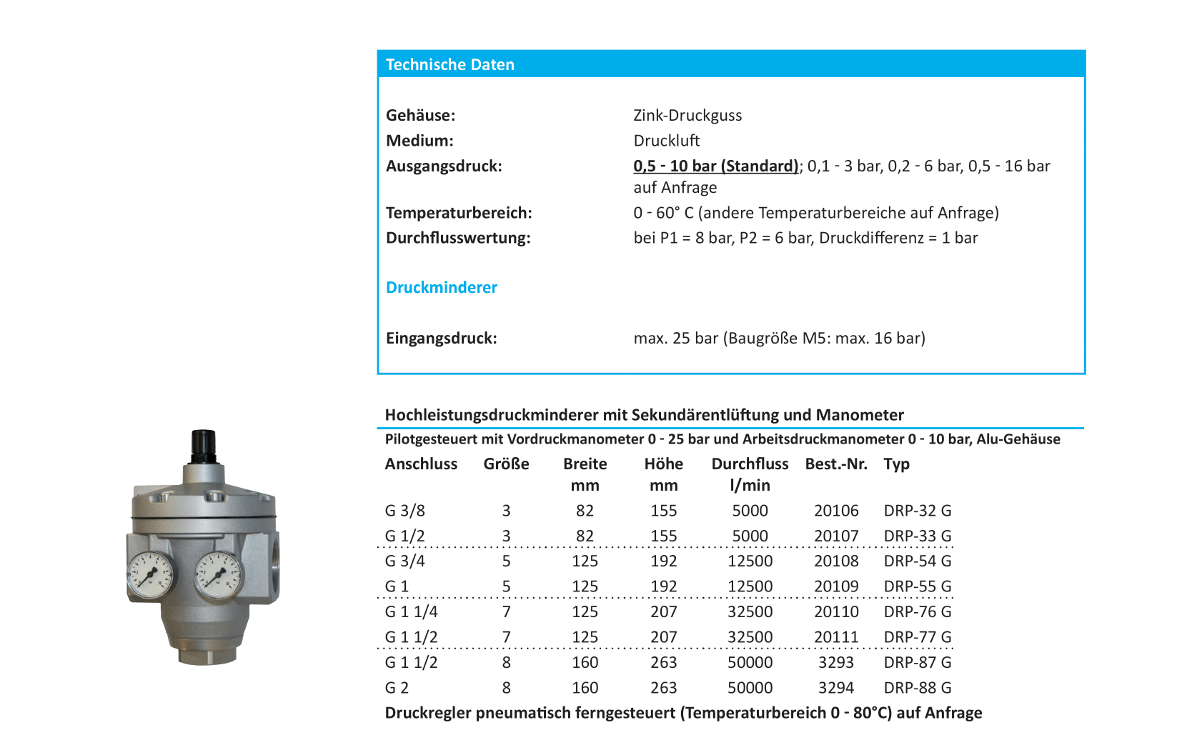 Baureihe STANDARD: Hochleistungsdruckminderer