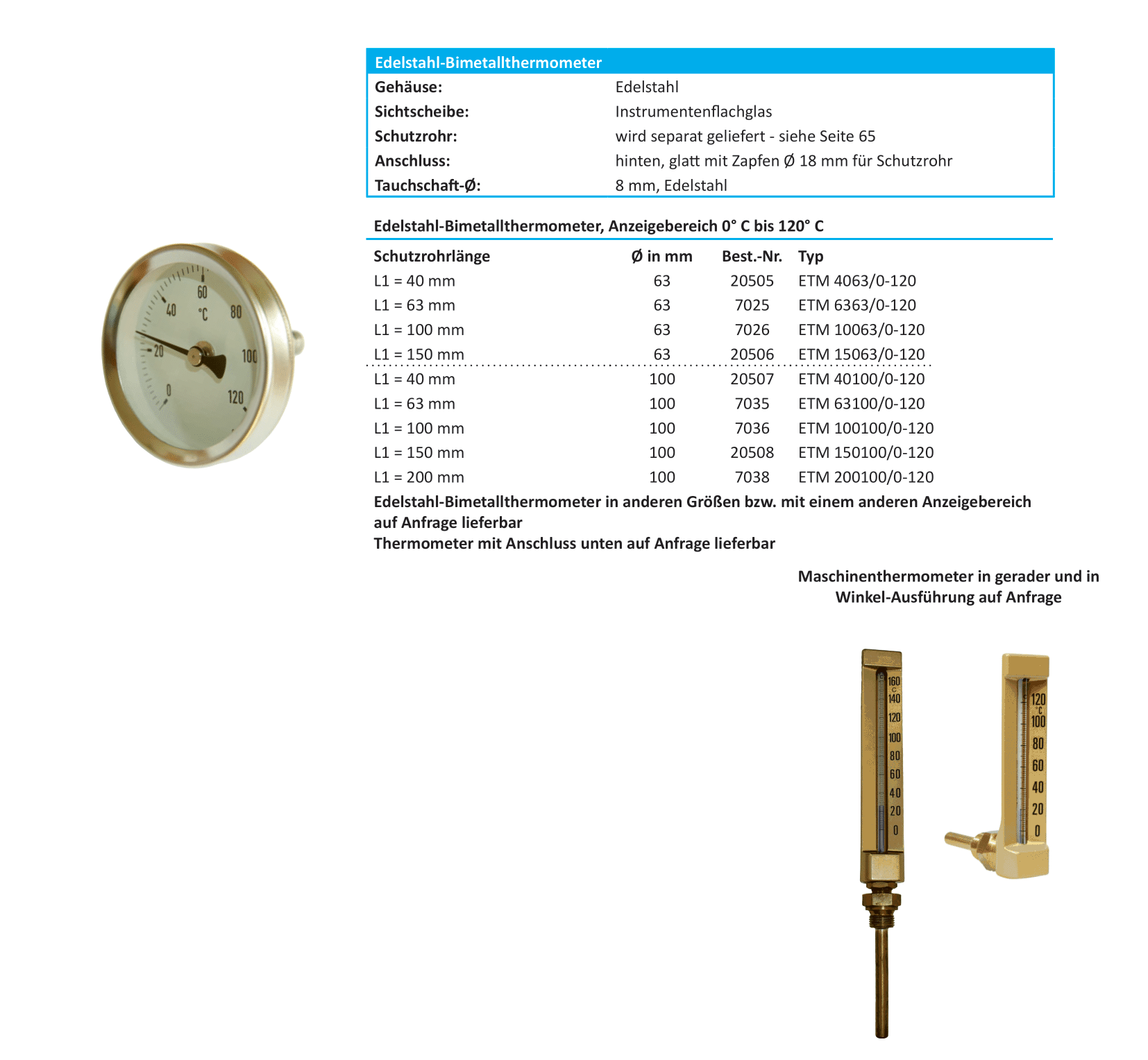 Bimetall-Thermometer: Edelstahl-Ausführung
