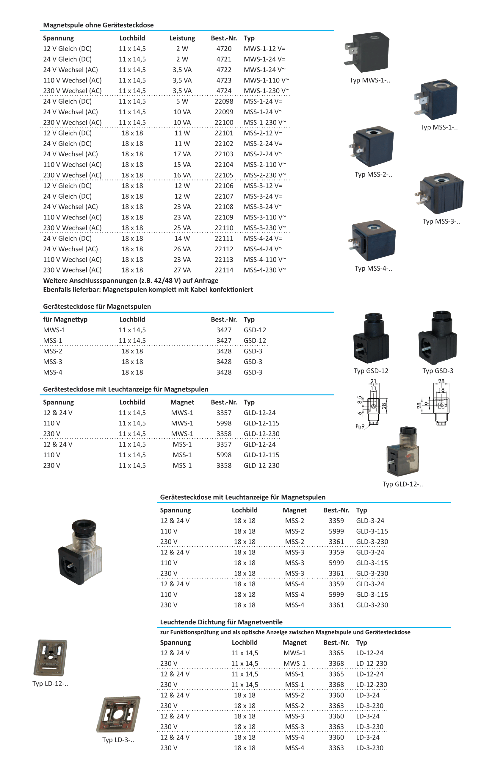 Magnetspulen - Gerätesteckdosen - Leuchtende Dichtungen