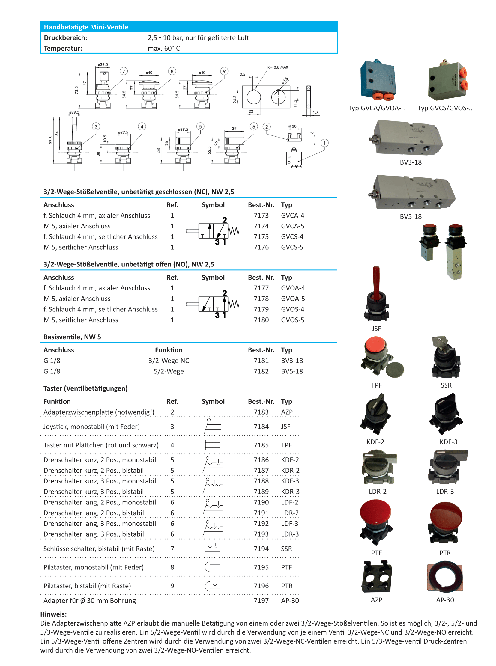 Hand-betätigte Mini-Ventile und Taster